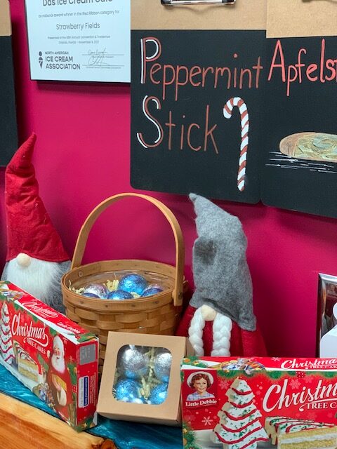 Das Ice Cream Café offers many flavors of premium, traditional ice cream, like: Old Tyme Vanilla and Chocolate, Oreo, Snickers, Key Lime, Salted Caramel, Lebkucheneis, and Vanilla Caramel Praline.